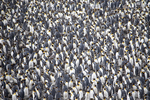 Image Description: A large densely packed colony of king penguins standing closely together. The penguins display distinctive black, white, and yellow coloring, with many facing different directions, highlighting social behavior and group dynamics in their natural habitat.