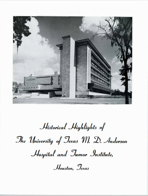 Historical Highlights of the University of Texas M.D. Anderson Hospital and Tumor Institute, Houston, Texas Pamphlet