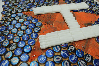Astros Logo made from old Houston Fire hose, and bottle caps and disposables from our Katy ATC nursing team