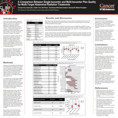 Comparison of single- versus multi-isocenter SBRT VMAT plans for abdominal oligometastases showed both are clinically acceptable. Multi-isocenter offered slight improvements but greater complexity.